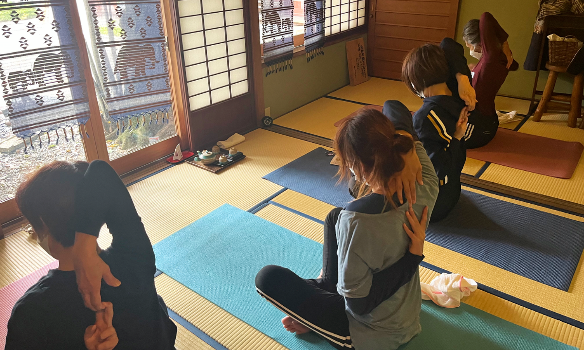 北陸では珍しい2人以上で行う組体操のようなアクロヨガ、妊婦さんのマタニティヨガ、陰ヨガも可能です。長い海外生活ではアクロヨガで培ったストレッチ効果の高いフライングマッサージも得意です。(初回不可)