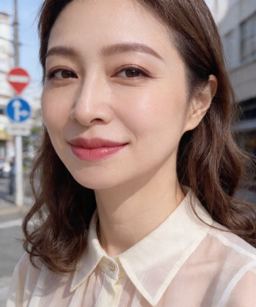顔全体を粉っぽくせず、崩れやすい部分だけをポイントで押さえることで、時間が経っても透明感をキープ。
