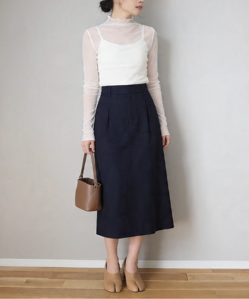今年の春は、ボリューム感のあるボトムスに、あえて透け感のあるトップスを合わせる「素材のコントラスト」がトレンドです。