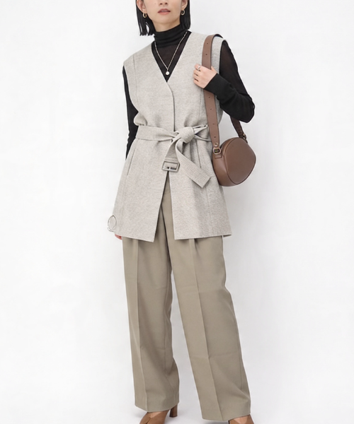 トレンドのボリュームボトムスと相性がいいのが、腰丈のショートトレンチ。重心が上がり、低身長さんから高身長さんまでスタイルアップが叶います。