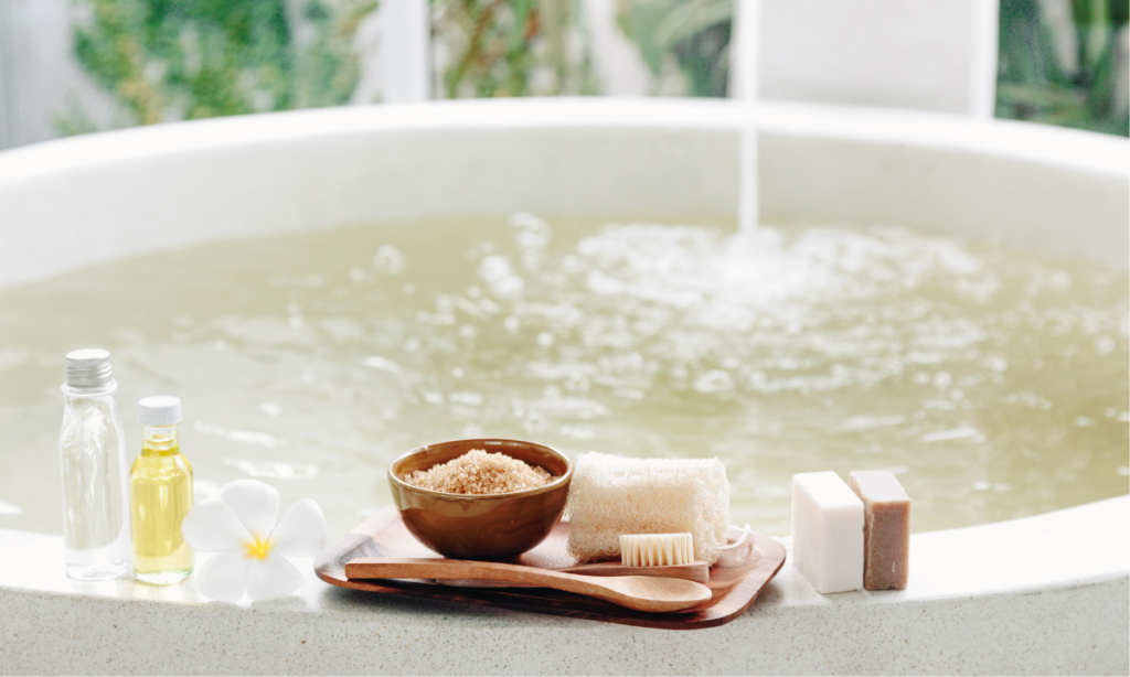 - ポイント: マグネシウムは皮膚から吸収されやすく、筋肉の緊張を和らげる効果が期待できます。38〜40℃のぬるめのお湯に20分。深い呼吸と共に、肩や首の力を抜いて「お湯に体を預ける」感覚を味わって。